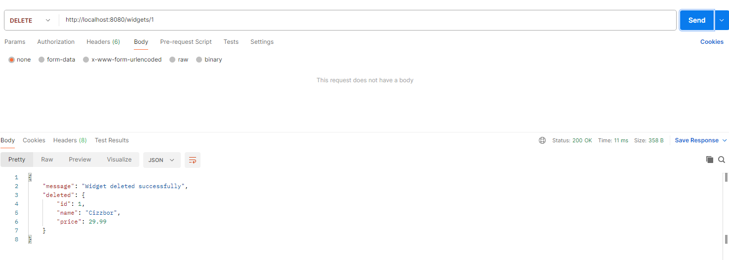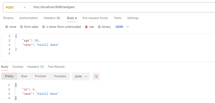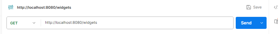 Sisestame API: http://localhost:8080/widgets