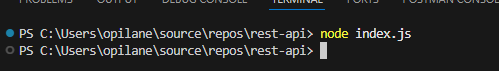 Loome terminali ja kirjutame sinna: node index.js