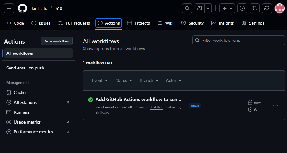 8. Kontrollisin tulemust repo Actions-vahekaardil.